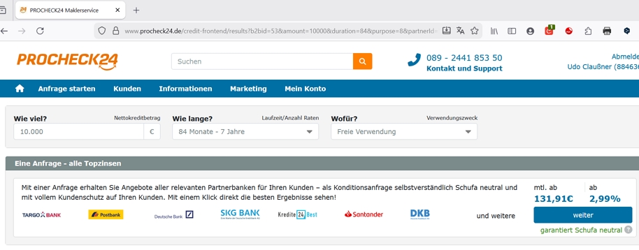 Bild 1: Kreditbedarf (online einstell- und beantragbar) und best mögliche Konditionen!